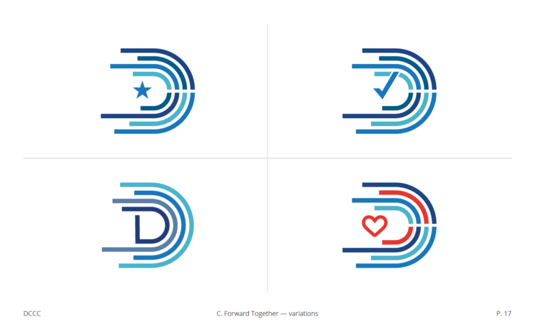 To achieve maximum success in that effort, the DCCC sought to create a modern, thought-through, cohesive identity—a banner behind which supporters can rally. There was a need to go from competing style guides, a confusing array of color palettes and typefaces, and an outdated logo to something more modern, strategic, professional, and focused on partnership.