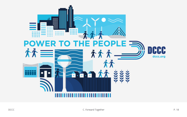 The team at the DCCC was thrilled with the new identity. They were excited for the logo and the system that accompanied it as they prepared for the epic 2018 midterm race. From DCCC creative director Kate: