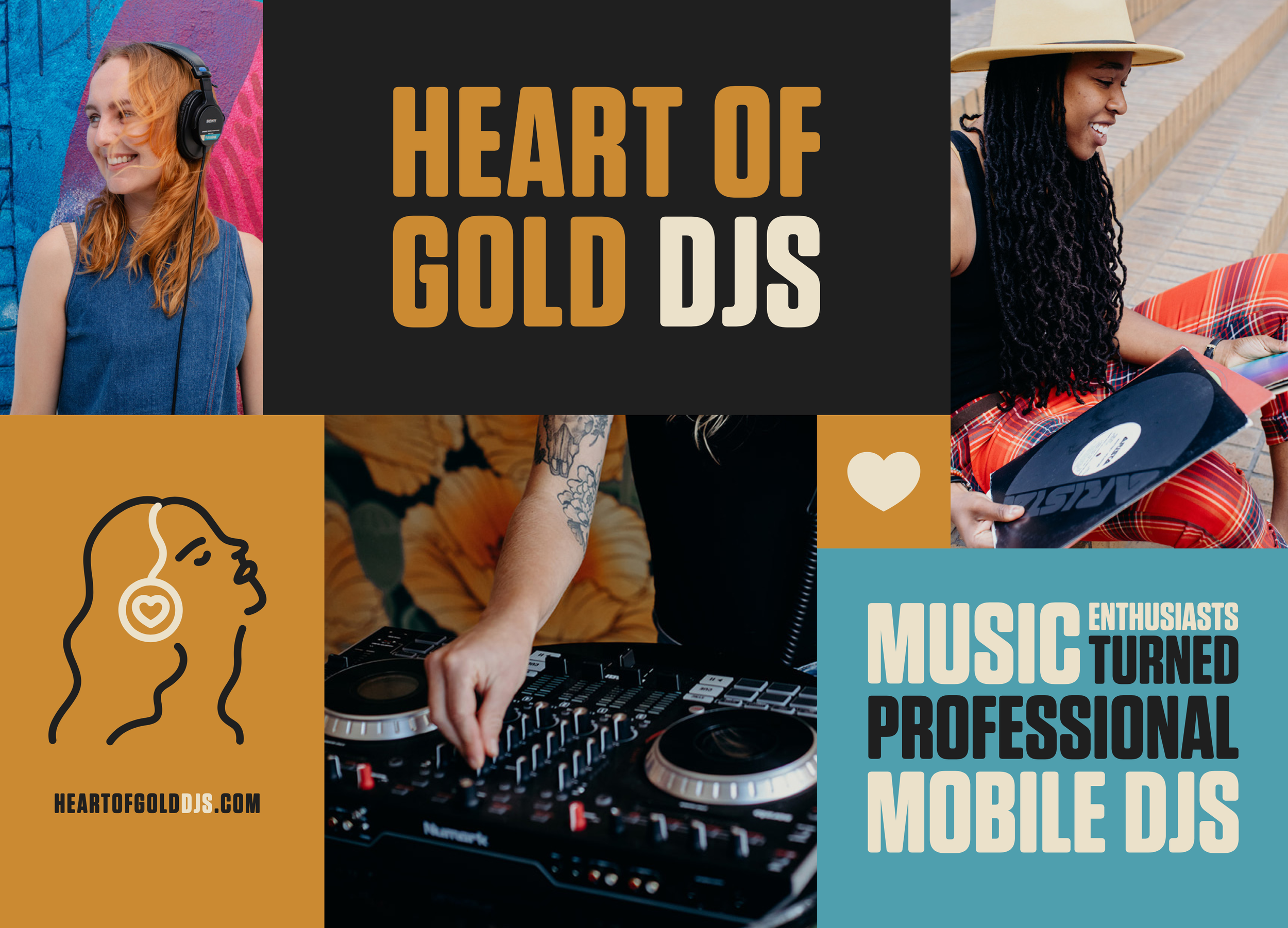 Directly recognizable as a music-related business, this takes a direct approach to conveying the Heart of Gold message: we spin gold. No cheesy gimmicks—just pure gold—and we put our heart in it every time.